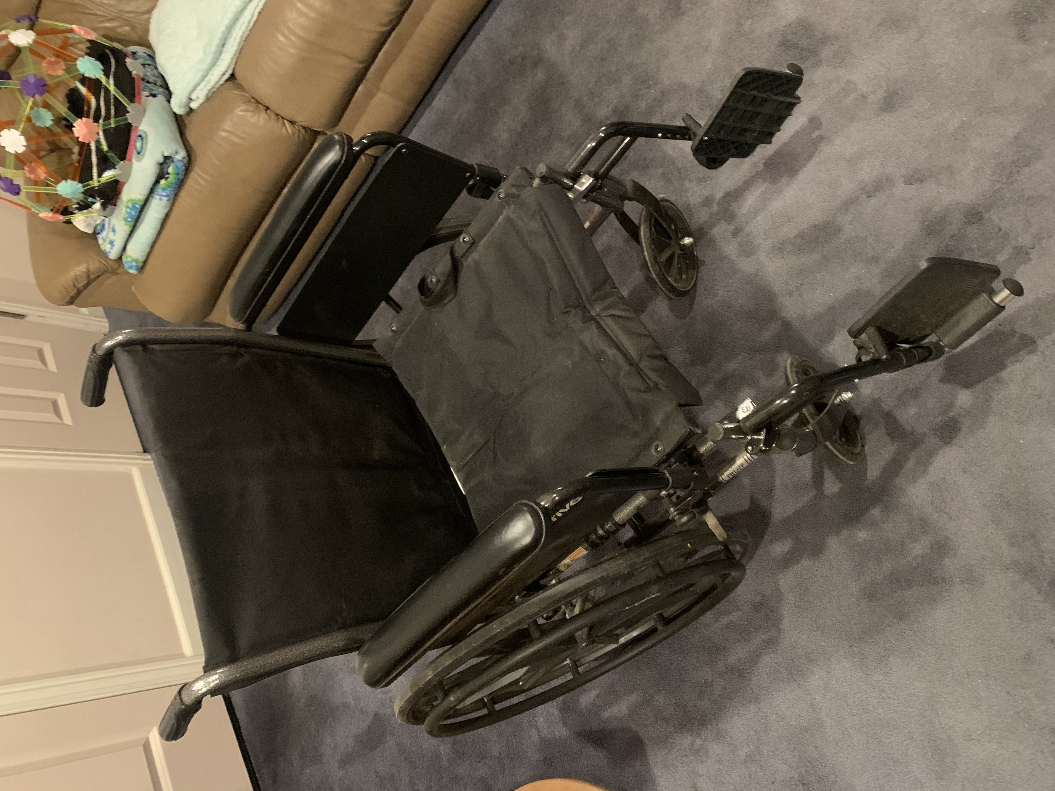 Very lightly used, like new condition, foldable manual wheelchair. Weight rating is 350 lbs and it has footrests. |